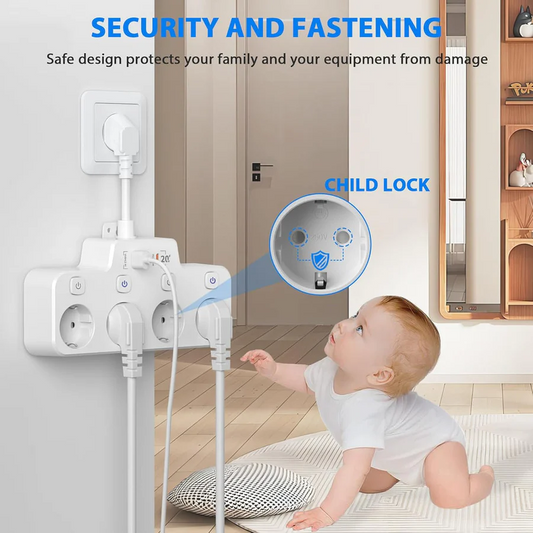 Wall Mounted Power Strip with Independent Switch 2 USB A and 1 USB C