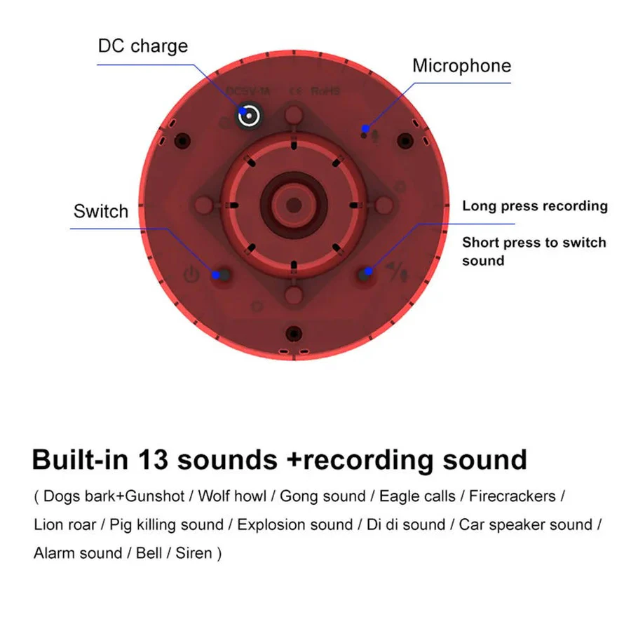 The repeller combines high-decibel sounds with bright LED strobes creating an effective barrier against wildlife. To keep pests from adapting it cycles through 13 different sound patterns every five minutes maintaining a consistently active deterrent environment.