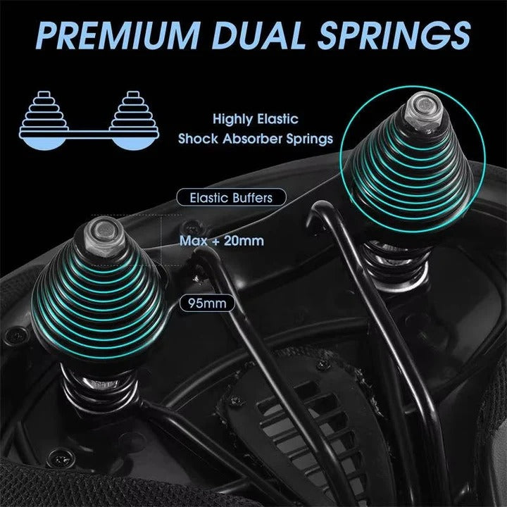 Dual spring balls and an elastic bow system absorb road vibrations effectively, keeping rides smooth over uneven surfaces. The flexible base design supports consistent balance and posture.