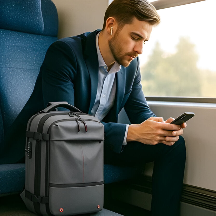The bag features an external pocket that has a coded zip closure. This provides a secure spot for essentials that you need to access often, keeping them protected during transit.