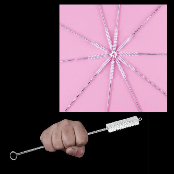 This set of cleaning brushes is designed for cleaning small and hard-to-reach areas. The slim, flexible design allows access to narrow spaces, making it suitable for various diameters.