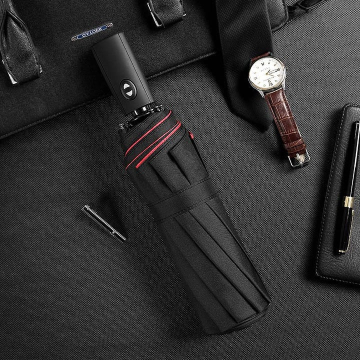 This windproof storm umbrella is designed to provide protection from the elements, ensuring the user stays dry and comfortable even during heavy downpours. It features a high-performance construction capable of handling fierce storms. The design is built to withstand strong gusts of wind effectively.