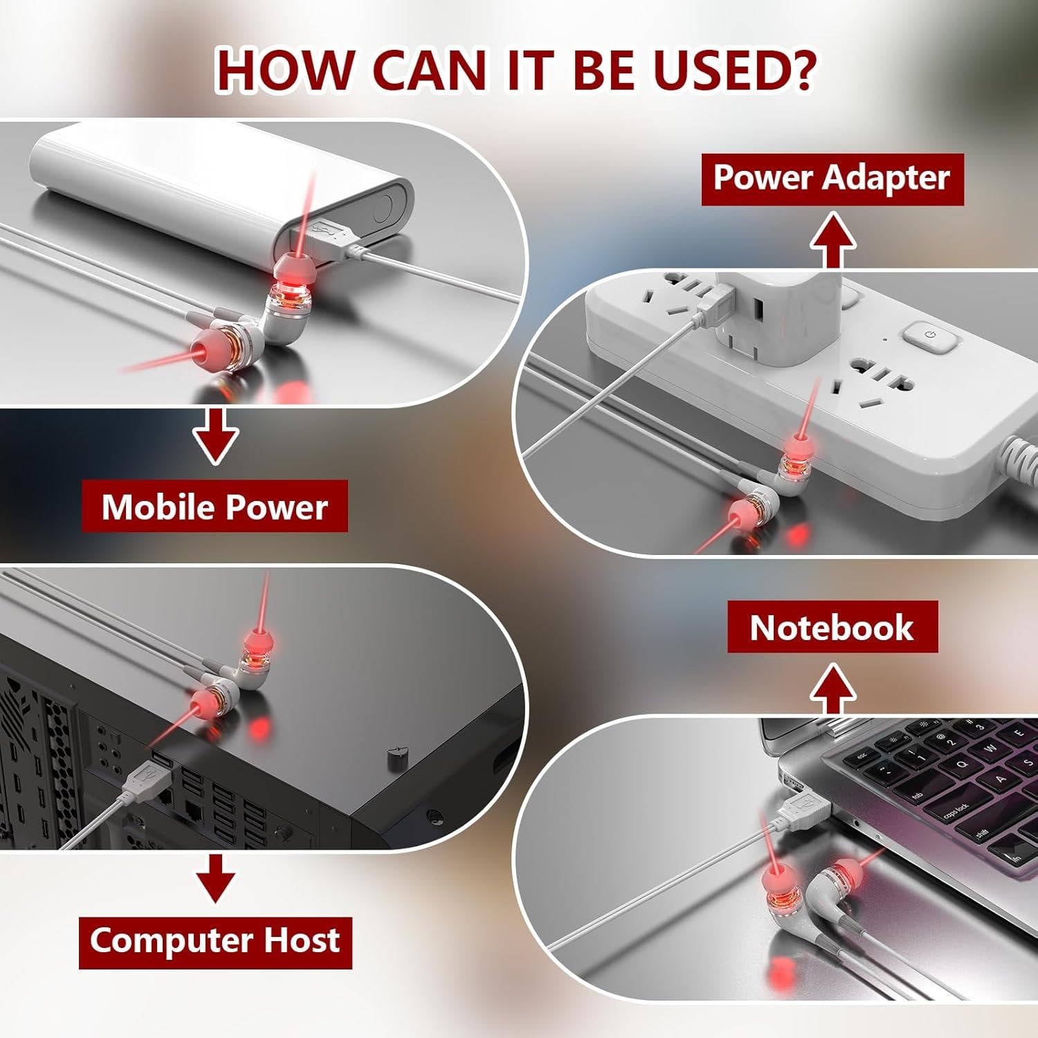 - UNIVERSAL USB COMPATIBILITY: Plug into power banks, laptops, wall adapters, or computer hosts for flexible use anywhere you need it.