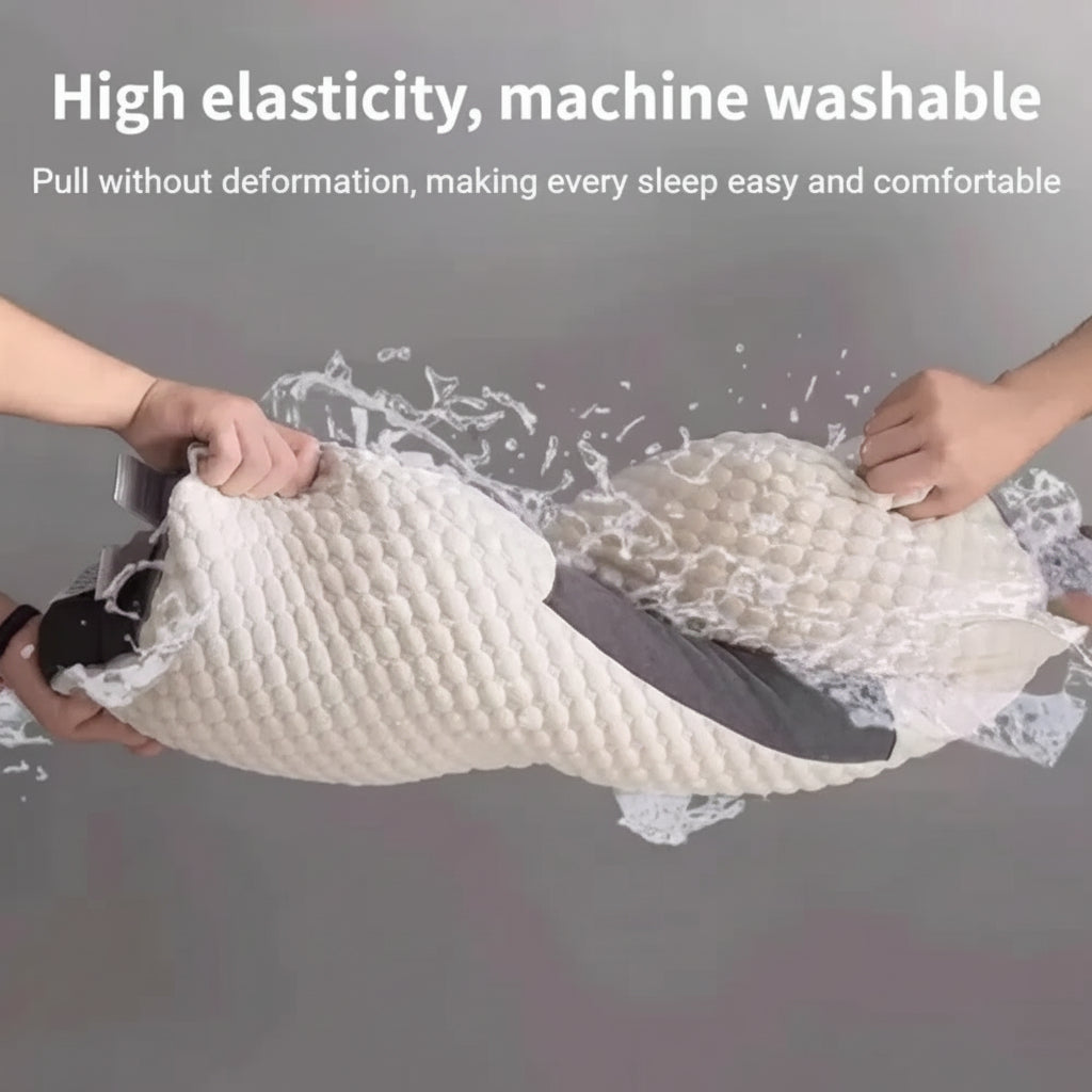 This pillow is designed with an ergonomic shape using a division shaping design to support your neck. It helps support natural spinal alignment during sleep. The supportive yet yielding Soybean Fiber core helps maintain proper neck positioning during sleep. This helps reduce strain on the neck during rest.