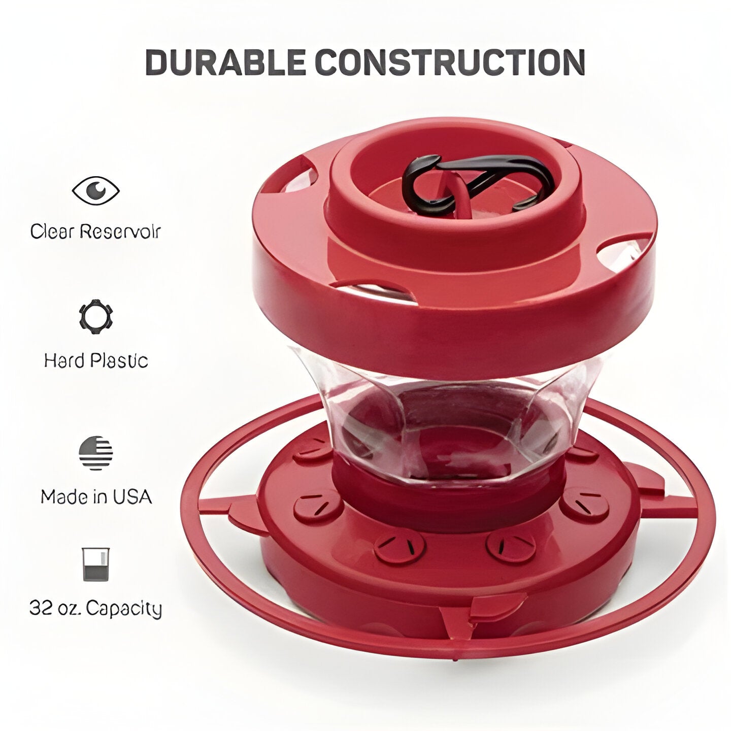 Hang from any branch or hook using the included S-hook and weather-resistant cord—no tools required. Crafted from UV-stabilized plastic, this hummingbird water feeder withstands sun, rain, and temperature changes for year-round enjoyment.