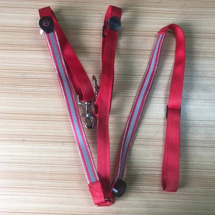 This breast collar utilizes LED technology to provide illumination for the horse and rider. It features three selectable lighting modes: steady light, fast blinking, and slow blinking. These settings allow the user to adjust the light output based on visibility needs.