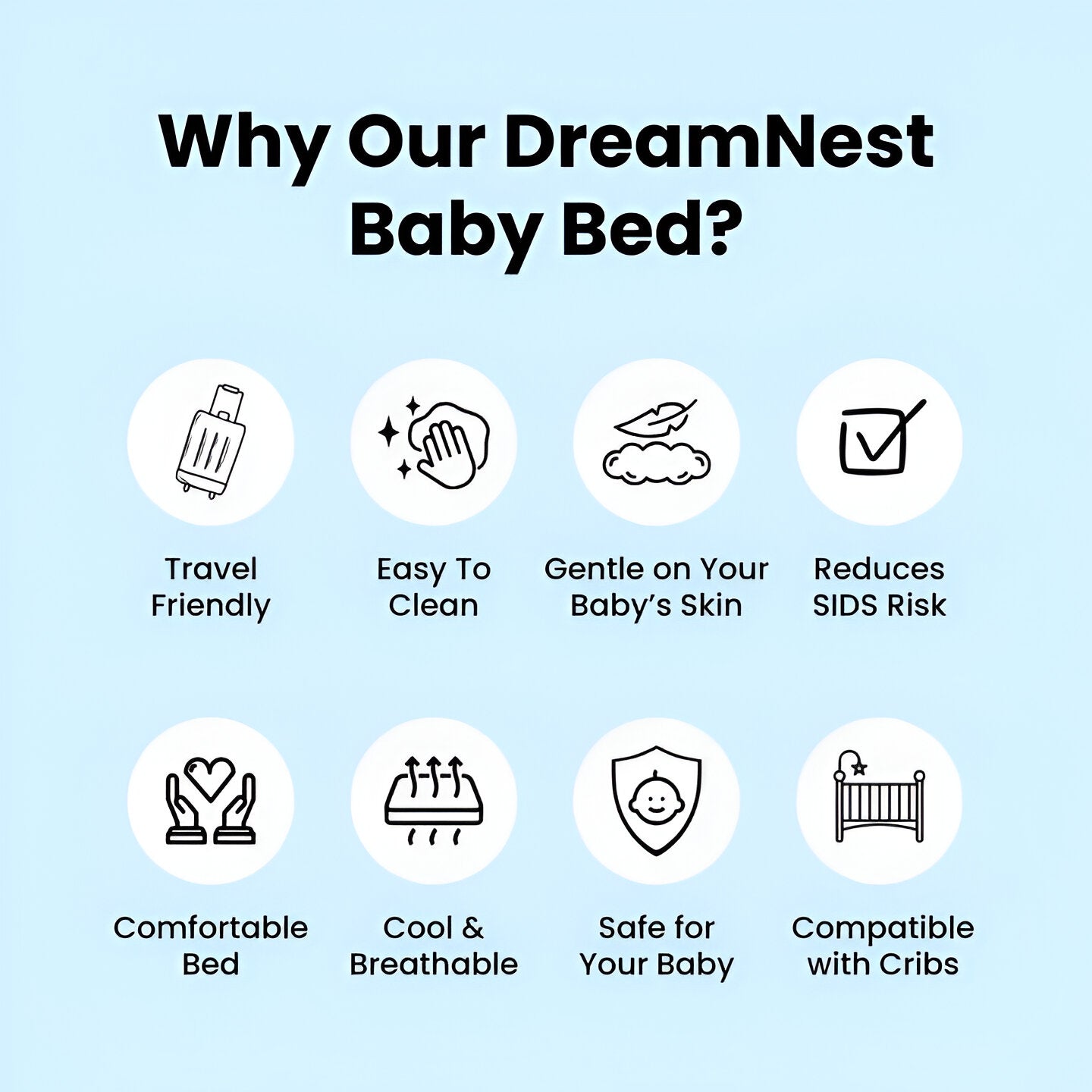 The pillow offers a slight elevation to support the baby’s upper body. Its soft, smooth surface is intended to provide a cozy feel while maintaining its shape during sleep.