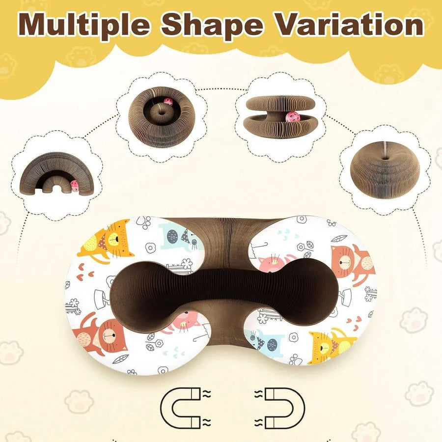 The upgraded magnetic design holds the structure stable so it doesn't slide across the floor during aggressive scratching. The foldable organ shape fits in tight spaces like corners or under furniture at just 4.33 inches (11 cm) tall. The scratch resistant material withstands daily use without shredding apart like cardboard scratchers.