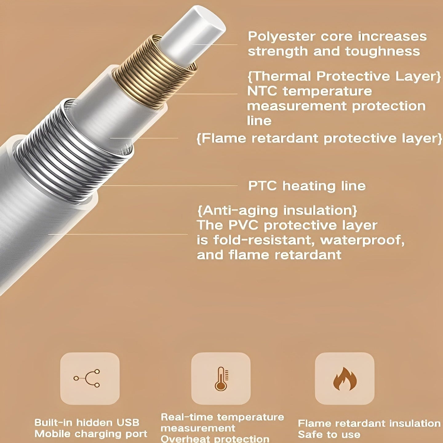 - Safety: Waterproof, flame-retardant