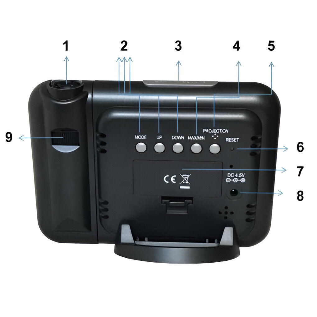 View the time easily from your bed with this multifunctional digital alarm clock. It projects the current time directly onto your wall or ceiling which allows you to check the hour without moving. The projection arm features a 360 degree direction switch and a focus knob to ensure the image remains clear and positioned exactly where you require it.