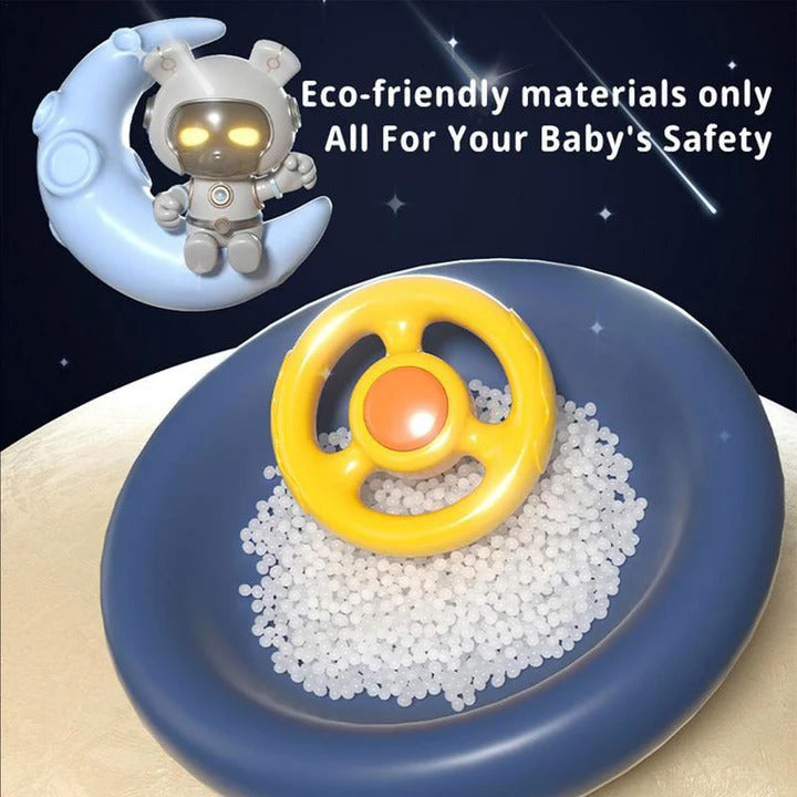 This desktop racing simulator allows children to navigate through digital landscapes using a responsive steering wheel. The experience is enhanced by a dynamic sound effects system that produces realistic engine roars and vehicle noises. The unit operates on a dual power system, functioning with either 3 AA batteries or via USB charging.