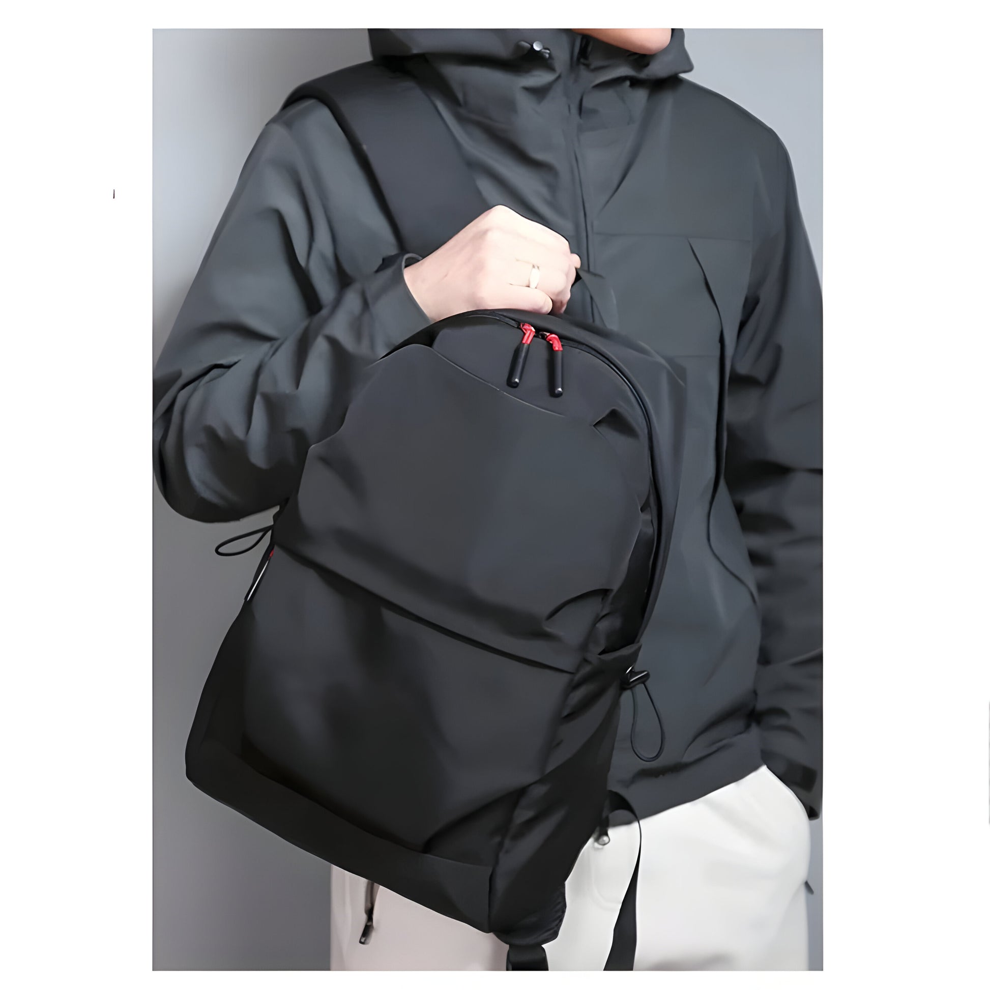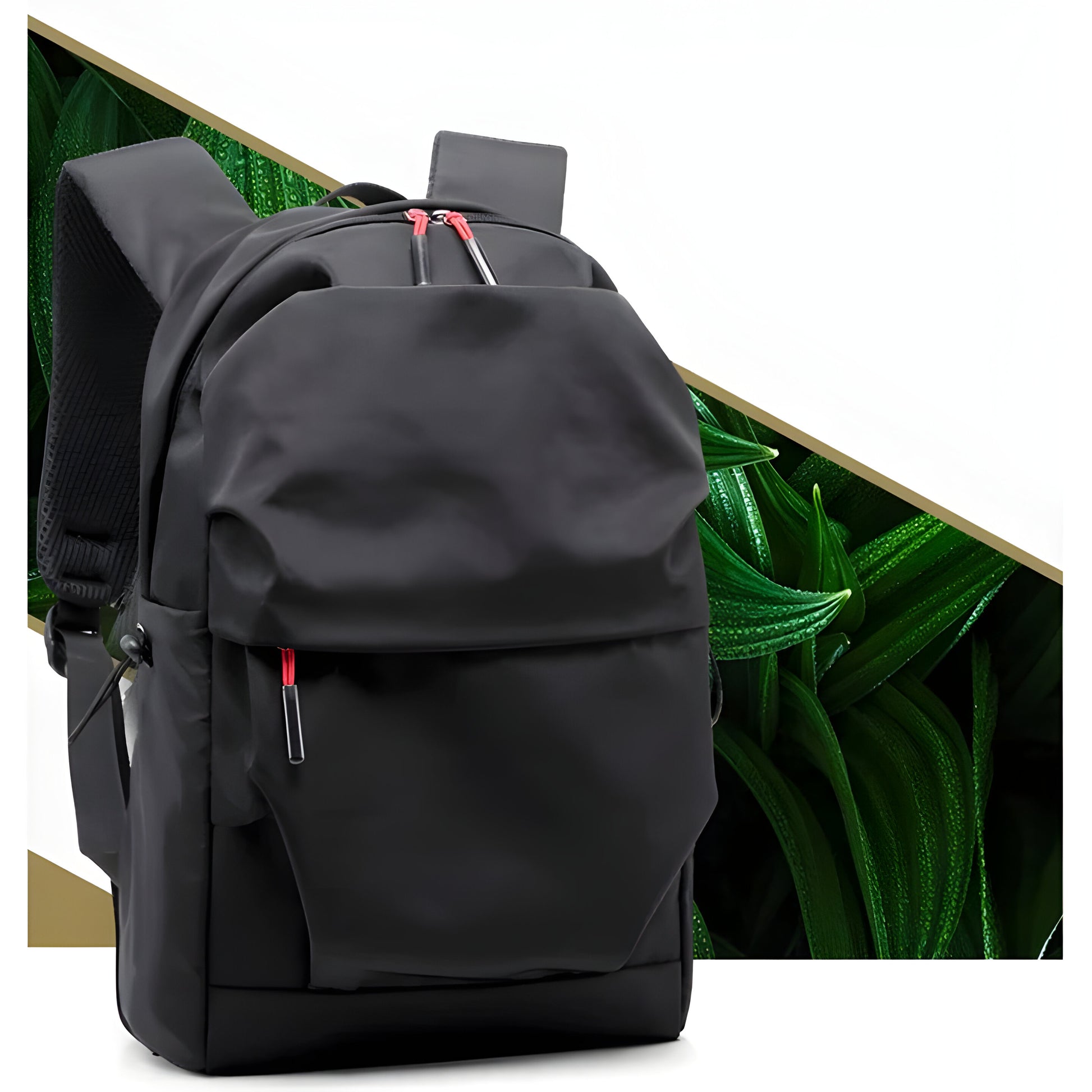 This lightweight backpack includes a top mounted handle, providing a grab and go carrying option. The main compartments are secured with a two way zipper system, which is intended for straightforward access to your belongings. The minimalist black styling is suitable for school, office use, or travel.