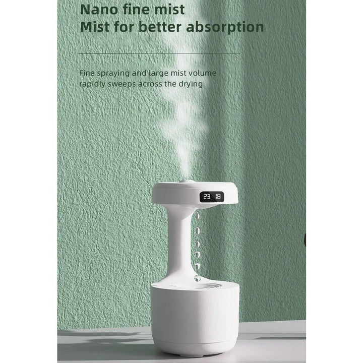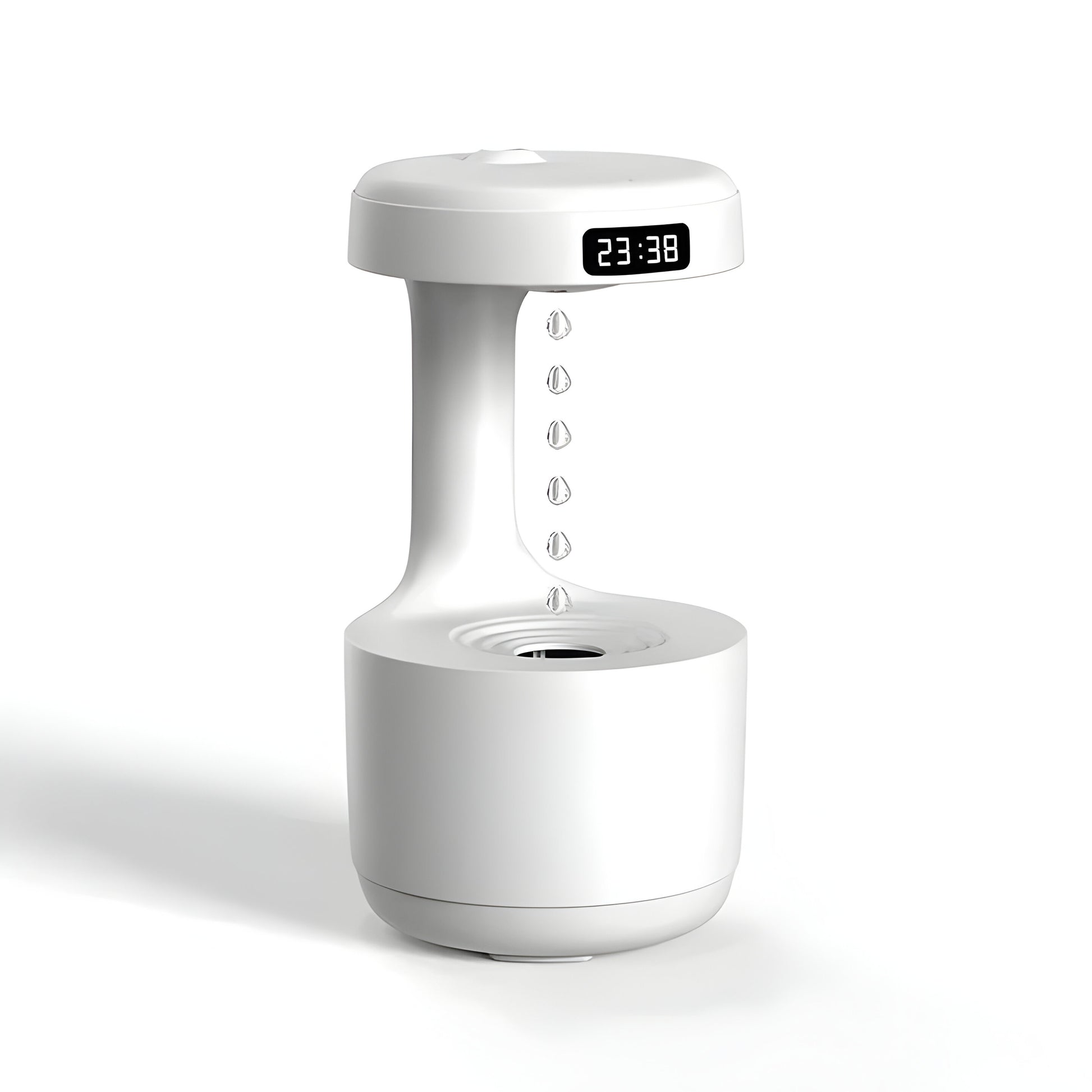 This small humidifier is designed to add moisture to the air. It features a dual purification system, which uses an antibacterial filter and a UV light as part of its operation. The unit also has an anti-gravity visual effect, where water droplets appear to flow upward while a fine mist is released.