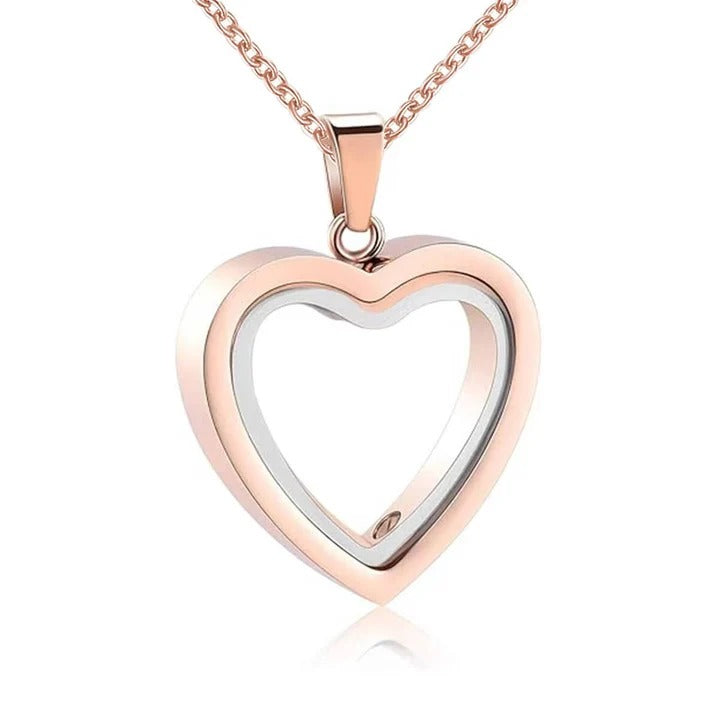 The Urn Pendant Necklace is designed to provide quiet comfort to those grieving by keeping the memory of a loved one close. It features a heart-shaped design with a dual-sided construction: one side is made of glass to show what is inside, while the other is solid stainless steel for a classic look. This allows the wearer to keep precious memories near their heart during daily activities, whether at morning coffee or family gatherings.