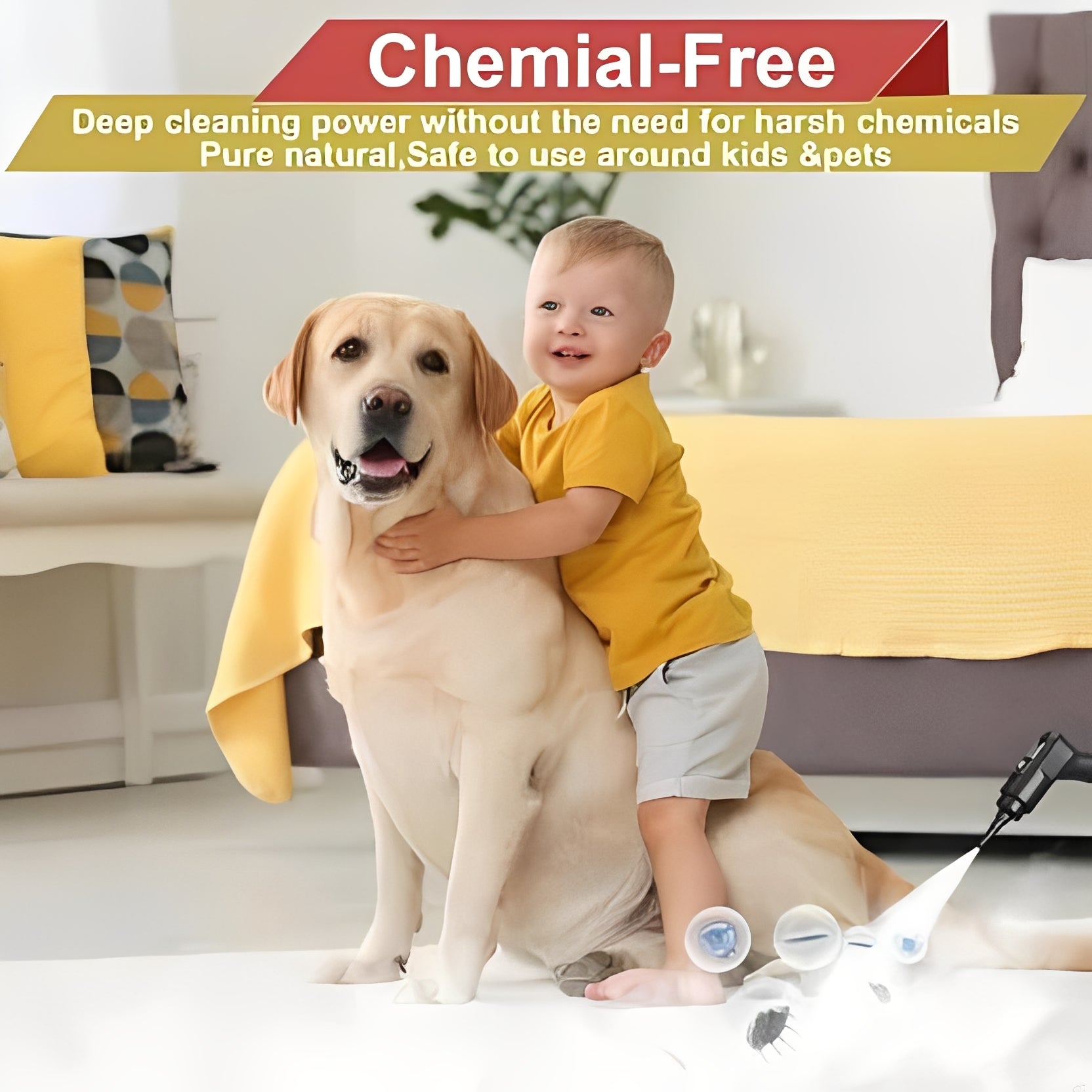 It works exclusively with steam, eliminating the need for additional cleaning products.