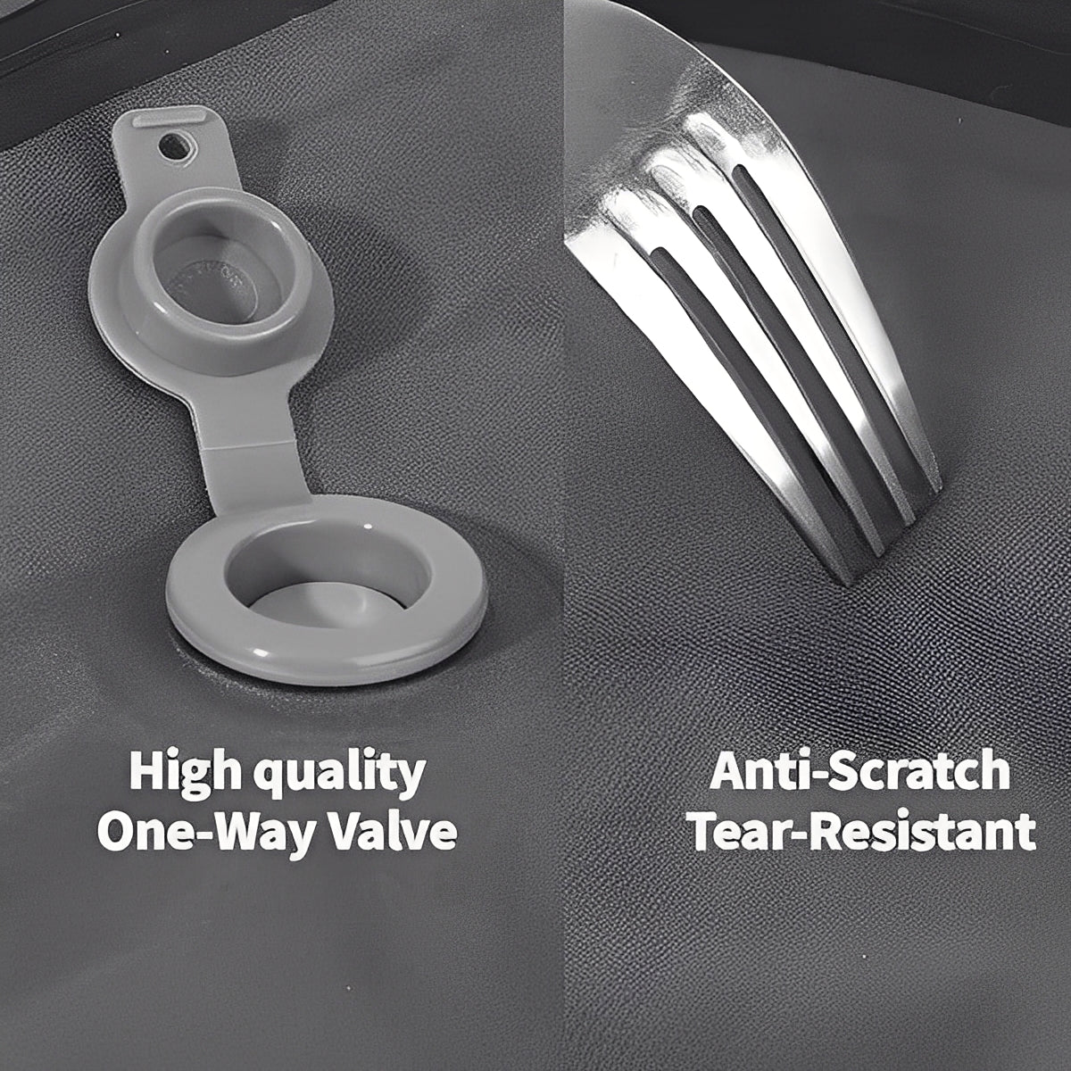 The bags are constructed from tear-resistant material. They have an IP67 waterproof rating and feature an airtight zipper seal with double pulls. This sealing system is intended to protect items from moisture and help maintain freshness during travel.