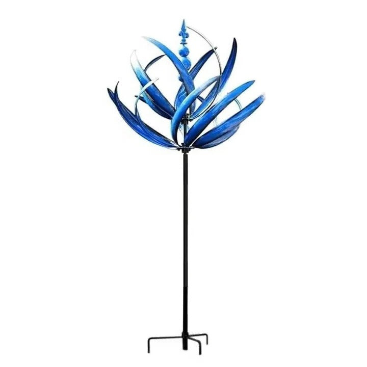 This metal wind spinner features a tulip design that rotates 360 degrees with the breeze, adding motion to the garden, patio, or lawn. Its retro windmill styling blends into outdoor settings, suitable for backyards and open spaces.